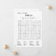 Bridal shower game modern word search game card