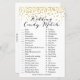 PRINTED Gold Confetti Bridal Shower Game - Wedding Candy Match game with answer on back