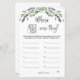 Where Were They Bridal Shower Game. This design features an illustration of eucalyptus leaves and purple lavender flowers in watercolor style. Text "Where were they" is written in a Script font. On the top - silver effect confetti.