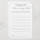 A fun party game for your Bridal Shower with this simple typographical design in black and white. Your guests will write down their favourite memory with the bride to be who will then read it out and everyone guesses whose memory it is. Your name and the date are subtely tinted in the background, overlaid with lines on which your invitees can write their anecdotes. The game name is in a set stylish script. Easily personalise the rest of the text.