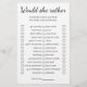 Bridal Shower game would she rather. Make it your own by adding your text (and personal photos). To access advanced editing tools, please go to “Personalise”, scroll down and press the "click to customise further" link.