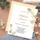 A white background decorated with golden eucalyptus sprigs. Personalise and the name of the bride to be and party details. Black and golden coloured letters.