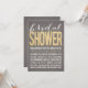 GORGEOUS warm grey/grey and gold coloured modern typography yet with a gorgeous soft vintage look and feel. Add your own text to the template to create this popular, quality, professional, printed glimmering bridal shower invitation flat card. Gorgeous SOFT blue green aqua coloured paper background with stunning glimmering gold typography.
