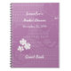 This Bridal Shower Guest Book spiral notebook is decorated with a pastel purple floral pattern with white flowers.. Easy to customise, just CHANGE or delete EXAMPLE NAME and TEXT. All Rights Reserved © 2015 Alan & Marcia Socolik.