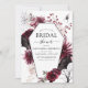 Halloween October 31st Autumn Fall Dark Watercolor Burgundy Wedding Bridal Shower Invitations on Black background - includes haunting and scary elegant script typography with modern Flowers and Bat Wings for the special Creepy Bride to Be day celebration.