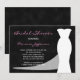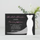 This beautiful bridal shower invitation features a white bridal gown with a semi-transparent train on a black chalkboard background. This bridal shower invitation is perfect for use with any colour scheme as you can change the pink wording to the colour of your choice by clicking on customise it and then click on the line you are interested in changing the colour of and then click colour and select your colour. A great bridal shower invitation. Copyright henishouseofpaper