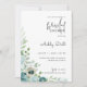Minimalistic bridal shower invitation with dusty blue and greenery flowers & leaves