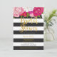 Black and White Stripes Pink and Gold Floral Bridal Shower Invitation