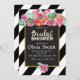 Bridal Shower Invitation, Floral Black & White Stripes