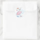 The sticker is made on wonderful paper and had no problem sticking to the bag that I purchased to put it on. I wanted to find a design that would be cute for the bride and groom and this one fit the bill as it has cute "bees" buzzing around and the wedding was taking place in a town called "Bee Cave". The packaging was great and protected the stickers. The website is easy to navigate and there are so many color choices. I had no problem finding a color that the bride was using on everything else selected. The design was adorable and there were many to choose from. You can make the figure as larger or smaller and you can place the photo and writting whereever you want to in the sticker. The printing is fabulous..better than expected.