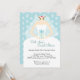 Bridal Shower Invitations with Bride & gift in blue and polka dots