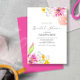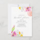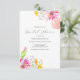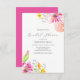 These bridal shower invitations feature watercolor flowers in multi shades of pink, orange and lavender. The words "Bridal Shower" are set in elegant calligraphy script. The card reverses to a complimentary vibrant pink colour. A boho chic choice for a floral wedding theme, botanical brunch or a get together with a garden vibe. Order printed cards, sample bridal shower invitations or a downloadable DIY file. Unique watercolor art and design by Victoria Grigaliunas of Do Tell A Belle.