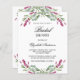 A white background. Decorated with pink lavender flowers and eucalyptus greenery. Personalise and add a name and party details. The name is written with a hand lettered style script.