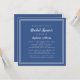 Simple and trendy classic navy blue and white bridal shower square invitation design features a simple contemporary minimalist design with a double frame border crisp white on a classic navy blue background. Personalise bridal wedding shower design with your details in trendy lettering and script in white. The back matches in solid blue. For best results replace template details with your own details leaving space between paragraphs as in the example and use all lower case letters where specified. E-mail invitationsuites@gmail.com with questions or custom requests.