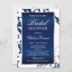 Bridal Shower - Navy Blue Marble, White & Silver Invitation