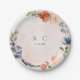 Botanical, Floral Bridal Shower Dessert Plates with Orange, Peach and Blue Florals: These unique bridal shower plates feature a beautiful orange, peach and dusty blue wreath surrounding the bride & groom's monogram and wedding date.