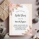 For a modern boho bridal shower. An arch frame and rose gold marble print as background. Decorated with rose gold and pink florals, roses and pampas grass. Personalise and add a name and details.