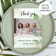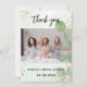 A modern Bridal Shower Thank You photo card. A waterecolored green background, decorated with a eucalyptus sprig. Personalise and add your photo and thank you note.