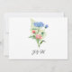5x7 horizontal paper invitation. Hand painted in watercolor with a dusty blue background and sky blue mums and several shades of pink flowers over wild woodland ferns. Gold glitter (simulated) geometric double asymmetrical border for a modern design. Copyright, Audrey Jeanne Roberts.