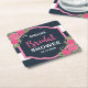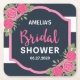 Bridal Shower Pink Roses Blue White Stripes Square Paper Coaster