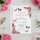 Bridal Shower Pretty Chic Floral Pink Butterfly Invitation