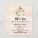A rose gold and blush pink gradient background, decorated with a cream coloured pumpkin and flowers. Personalise and add the name and party details. Text: fall in love