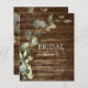 Budget Eucalyptus Greenery Rustic Wood Botanical Watercolor Spring Wedding Bridal Shower Invitations on white background - includes beautiful and elegant script typography with modern botanical leaves and greenery for the special Bride to Be celebration.
