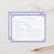 This bridal shower recipe card adds a charming touch to your celebration. With a lavender scalloped edge, soft purple script, and sweet blue hydrangeas in each corner, it feels both romantic and classic. Guests can fill in a favourite recipe for the bride-to-be—perfect for building a sentimental keepsake collection. Great for tea parties, garden showers, or heirloom-style events. Coordinates beautifully with blue or lilac wedding palettes.