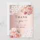 Bridal Shower rose gold floral lace thank you card