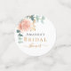 A chic white background decorated with a rose gold, blush flower, rose and eucalyptus greenery. Personalise and add a photo and the name of the bride to be.