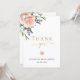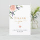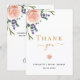 A modern and elegant bridal shower thank you card. A chic white background. Decorated with a rose gold and blush pink roses, florals flowers and lavender. Black and golden letters. On the front the text: Thank You, name, and a date.