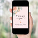 A soft pink background. Decorated with a rose gold, blush pink florals, flowers (roses)and green watercolored eucalyptus leaves, sprigs, greenery and faux gold sprigs. Large hand lettered script and the text: Thank You. Personalise and add your thank you note and name.