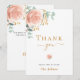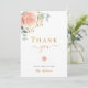 A soft pink background. Decorated with a rose gold, blush pink florals, flowers (roses)and green watercolored eucalyptus leaves, sprigs, greenery and faux gold sprigs. Large hand lettered script and the text: Thank You. Personalise and add your thank you note and name.