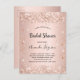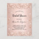 For an elegant bridal shower. A rose gold coloured background. Decorated with rose gold, pink faux sparkles. Personalise and add the bride to-be's name and party details. The name and the text: Bridal Shower are written with a hand lettered style script.