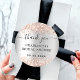 A faux silver looking background decorated with rose gold faux glitter, sparkles. Personalise and add a name and date. Text: Thank you.