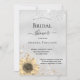 A modern, elegant and bridal shower. A faux silver looking background decorated with faux gold and silver glitter dust and a rustic sunflower. Personalise and add a name and party details. Black coloured letters.