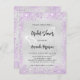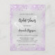 A modern, elegant bridal shower. Faux silver looking background decorated with purple faux sparkles and a large butterfly. Personalise and add a name and party details. Black coloured letters.
