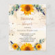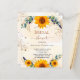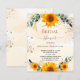 A white and golden watercolored background decorated with sunflowers, eucalyptus greenery and golden leaves and faux gold glitter dust. Personalize and add a name and party details.
