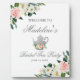 Watercolor Pink Floral Silver Bridal Shower Tea Party Welcome Plaque