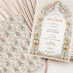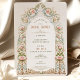 This beautifully designed Bridal Shower invitation exudes Victorian charm and sophistication, featuring intricate floral motifs with soft pink roses, delicate green leaves, and elegant scrollwork in shades of gold. The front of the card highlights the wedding details within an ornate floral frame, creating a timeless and romantic feel. The back continues the elegant theme with a repeat pattern of the vintage-inspired floral design. Perfect for couples planning a classic, vintage, or garden-themed wedding, this invitation sets a luxurious tone for your special day, combining the grace of Victorian aesthetics with modern craftsmanship.