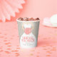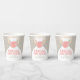 Elegant bridal dress with posy white coral stylised roses floral and grey heart rain bridal shower disposable paper cup. Edit these cups with your own honouring bride-to-be's name. Ideal for use at a bridal shower party and matches the dress bouquet coral red pink roses wedding set. © Original graphic art and design by Sarah Trett. www.mylittleedenweddings.com