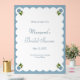 Welcome guests with understated elegance using this blue hydrangea bridal shower sign. Framed by soft scalloped edges and a dusty blue background, this design is adorned with delicate blue florals in each corner for a classic touch. The refined script and serif font combo pairs beautifully with garden, coastal, or French-inspired themes. A versatile favourite for spring and summer showers, this personalised sign adds charm and coordination to your celebration.