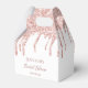 Elegant, classic, glamourous and girly for a Bridal Shower, party favours. A stylish White background colour. On the front and the back: Personalise and add a name and a date. The name is written with a modern hand lettered style script. Decorated with rose gold faux glitter drips, paint dripping look.