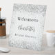 Bridal Shower white silver confetti script welcome Pedestal Sign