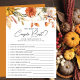 This fun and festive autumn bridal shower bingo game card features beautiful fall floral, autumn leaves, and pumpkins. It's the perfect way to get your guests excited about the bride-to-be's upcoming wedding while also enjoying a little bit of friendly competition.