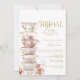 Set the stage for a charming and intimate bridal tea with this elegant invitation, featuring a watercolor chinoiserie teacup stack in serene pink tones. The perfect way to celebrate the bride-to-be with a cozy tea gathering!