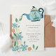 Bridal Shower invitation featuring a border of blue, ivory and orange flowers with greenery flowing from a cute whimsical teapot. Customise with your information for the bride to be. Click "click to customise further" to change the font style, size or colour.