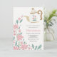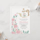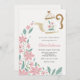 Bridal Shower invitation featuring a border of pink flowers and greenery flowing from a cute whimsical teapot. Customise with your information for the bride to be. Click "click to customise further" to change the font style, size or colour.