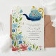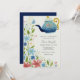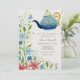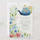 Wedding Shower invitation featuring a border of multicolor flowers with greenery flowing from a cute whimsical teapot. Customise with your information for the bride to be. Click "click to customise further" to change the font style, size or colour.