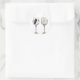 The sticker is made on wonderful paper and had no problem sticking to the bag that I purchased to put it on. I wanted to find a design that would be cute for the bride and groom and this one fit the bill as it has cute "bees" buzzing around and the wedding was taking place in a town called "Bee Cave". The packaging was great and protected the stickers. The website is easy to navigate and there are so many color choices. I had no problem finding a color that the bride was using on everything else selected. The design was adorable and there were many to choose from. You can make the figure as larger or smaller and you can place the photo and writting whereever you want to in the sticker. The printing is fabulous..better than expected.